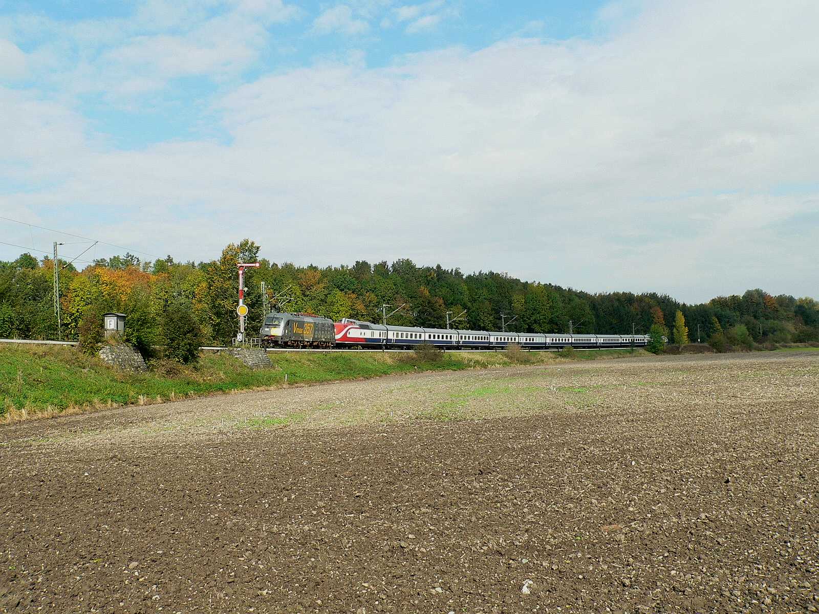 11-teilige Zug-Garnitur ist in Augsburg Rbf. bereitgestellt