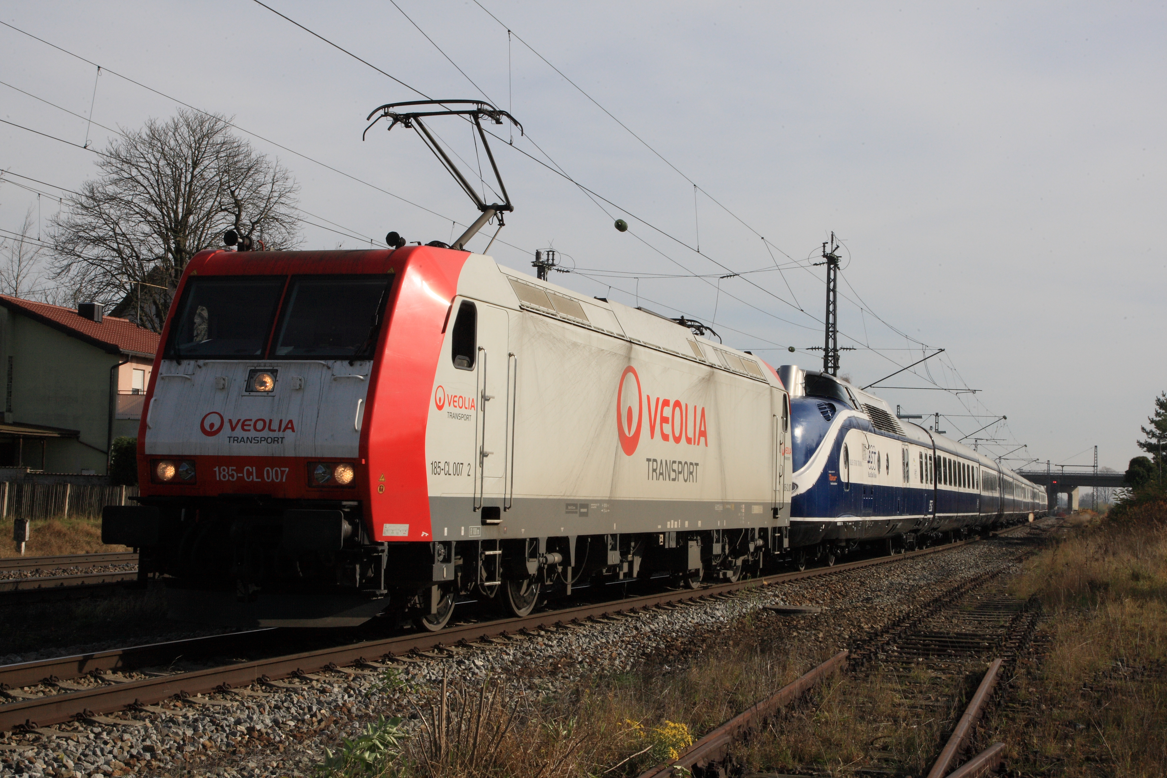 von Holzkirchen nach Augsburg im Schlepp der VEOLIA 185-CL 007