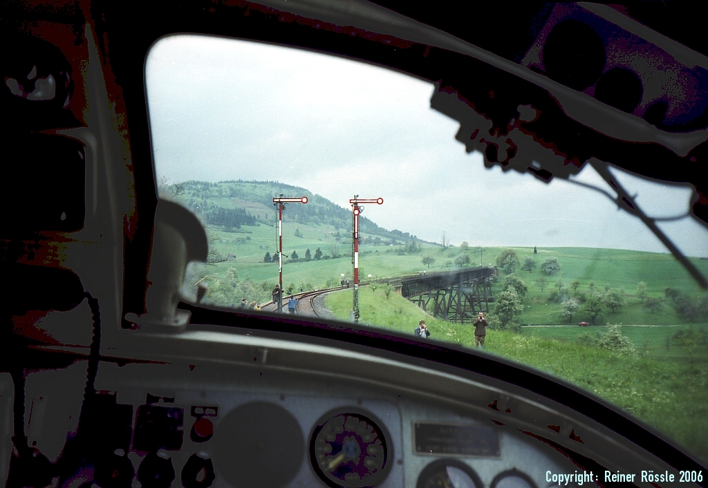 aus dem Führerstand auf das Epfenhofener Viadukt, 23.05.1978 ©