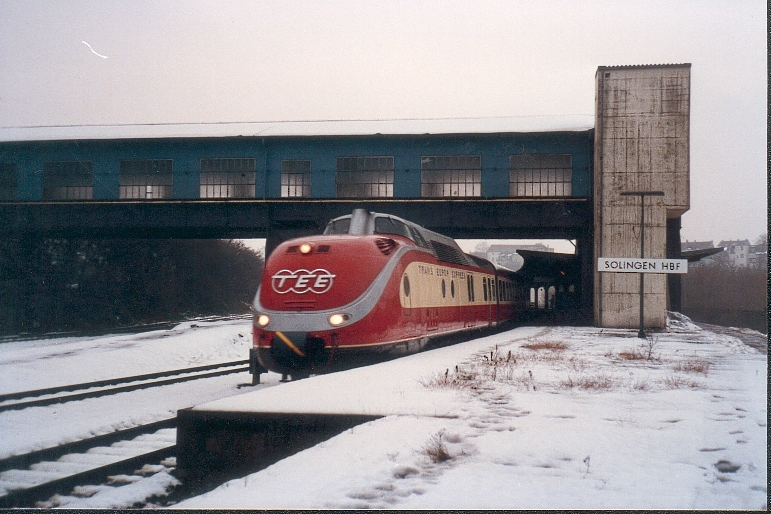 "Advent" Remscheid Hbf - Aachen Hbf am 01.12.1985 im alten und heute aufgelassenen Solinger Hauptbahnhof. |