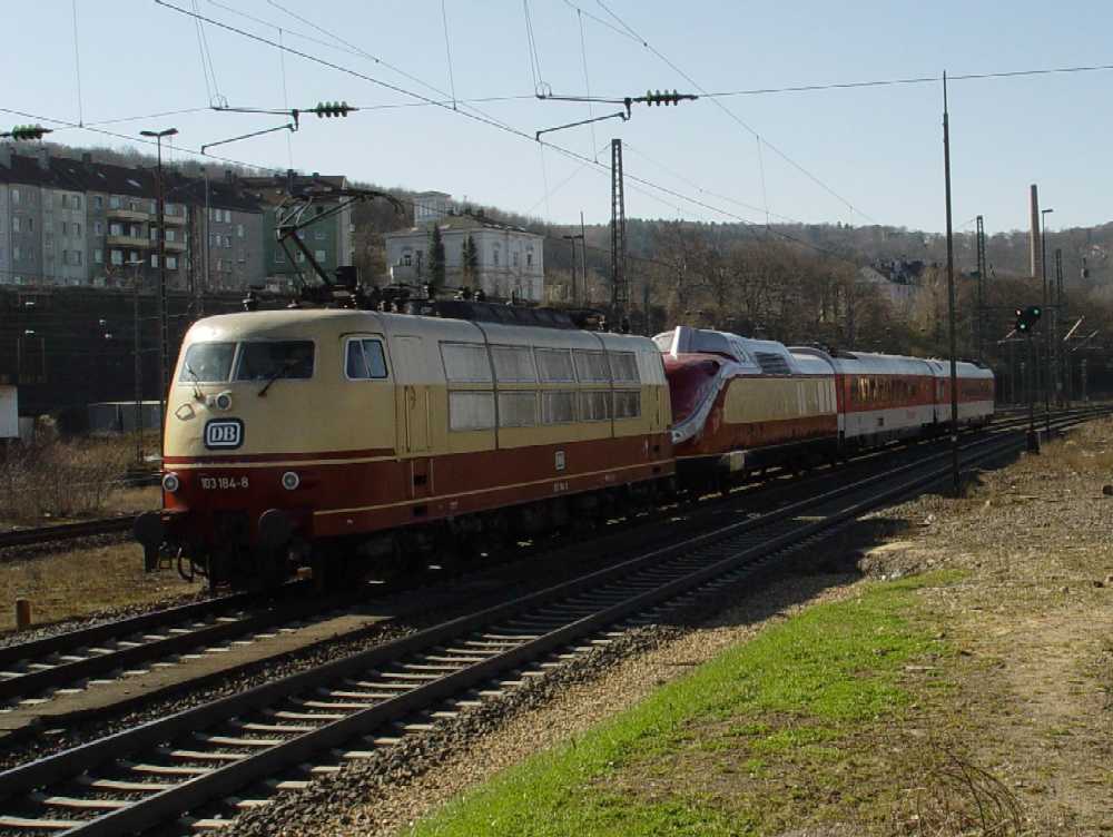 des 601 014 durch 103 184 von Opladen nach Stendal am 23.03.2003 in Wuppertal-Steinbeck
