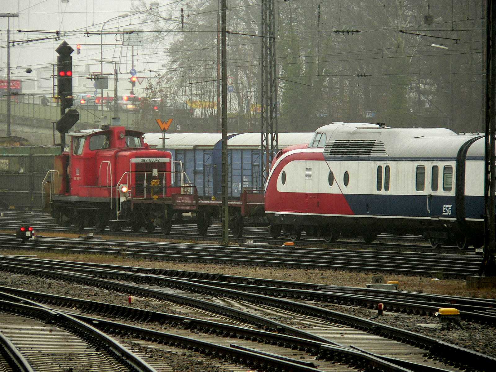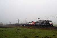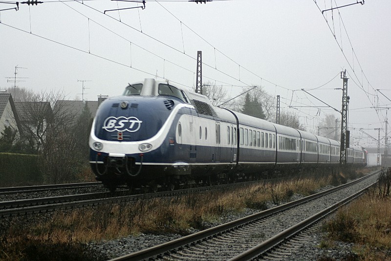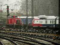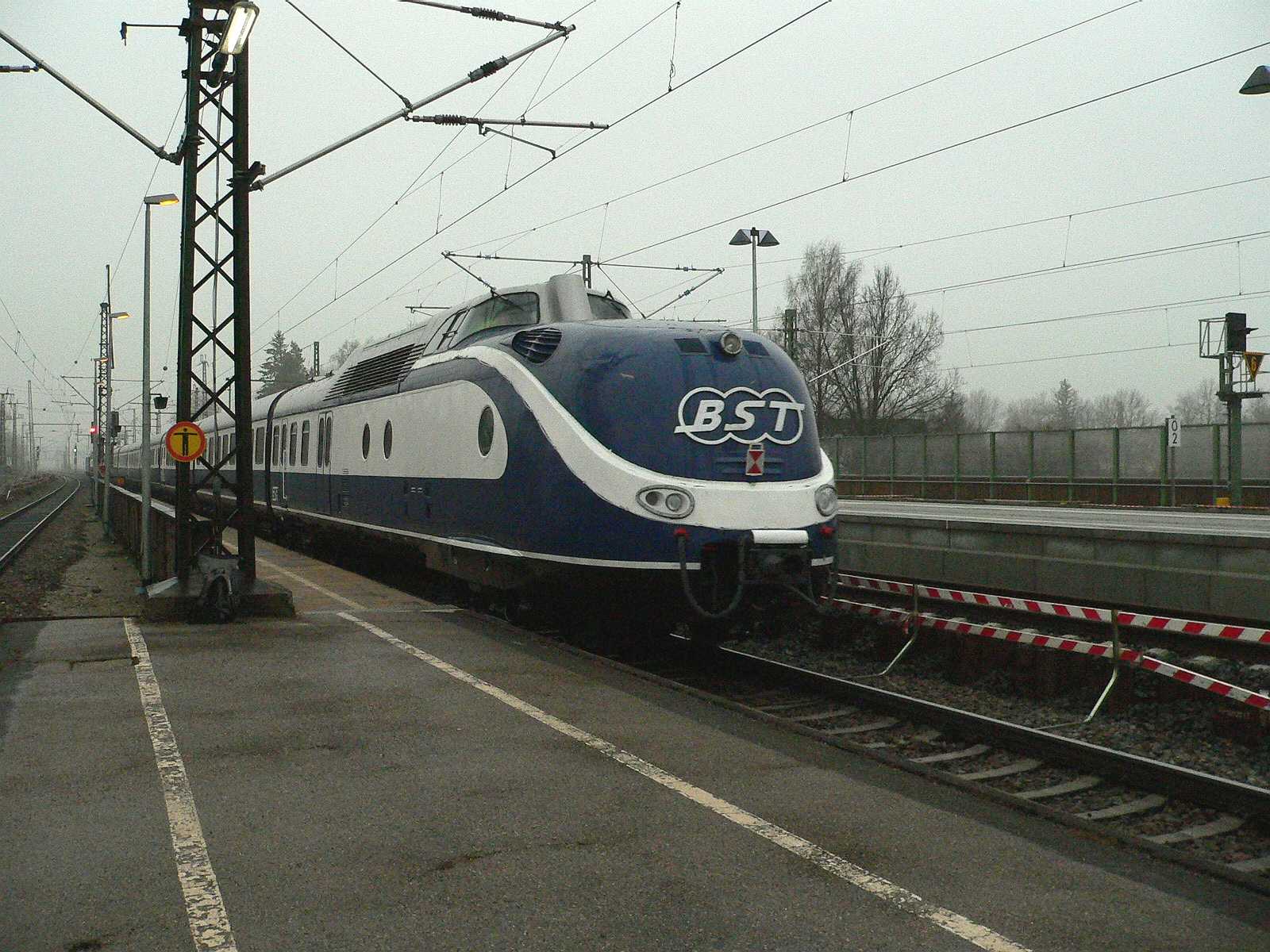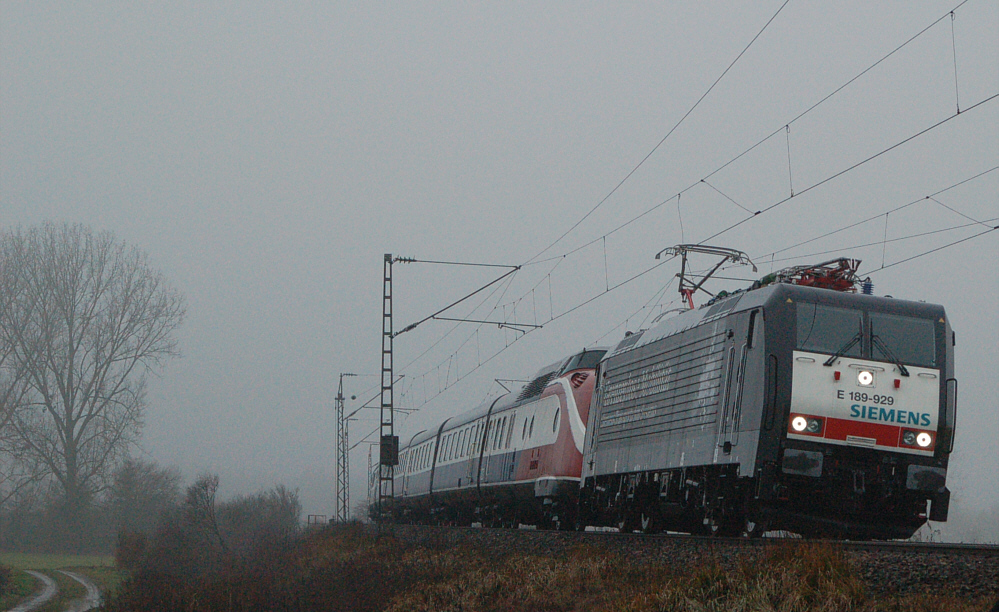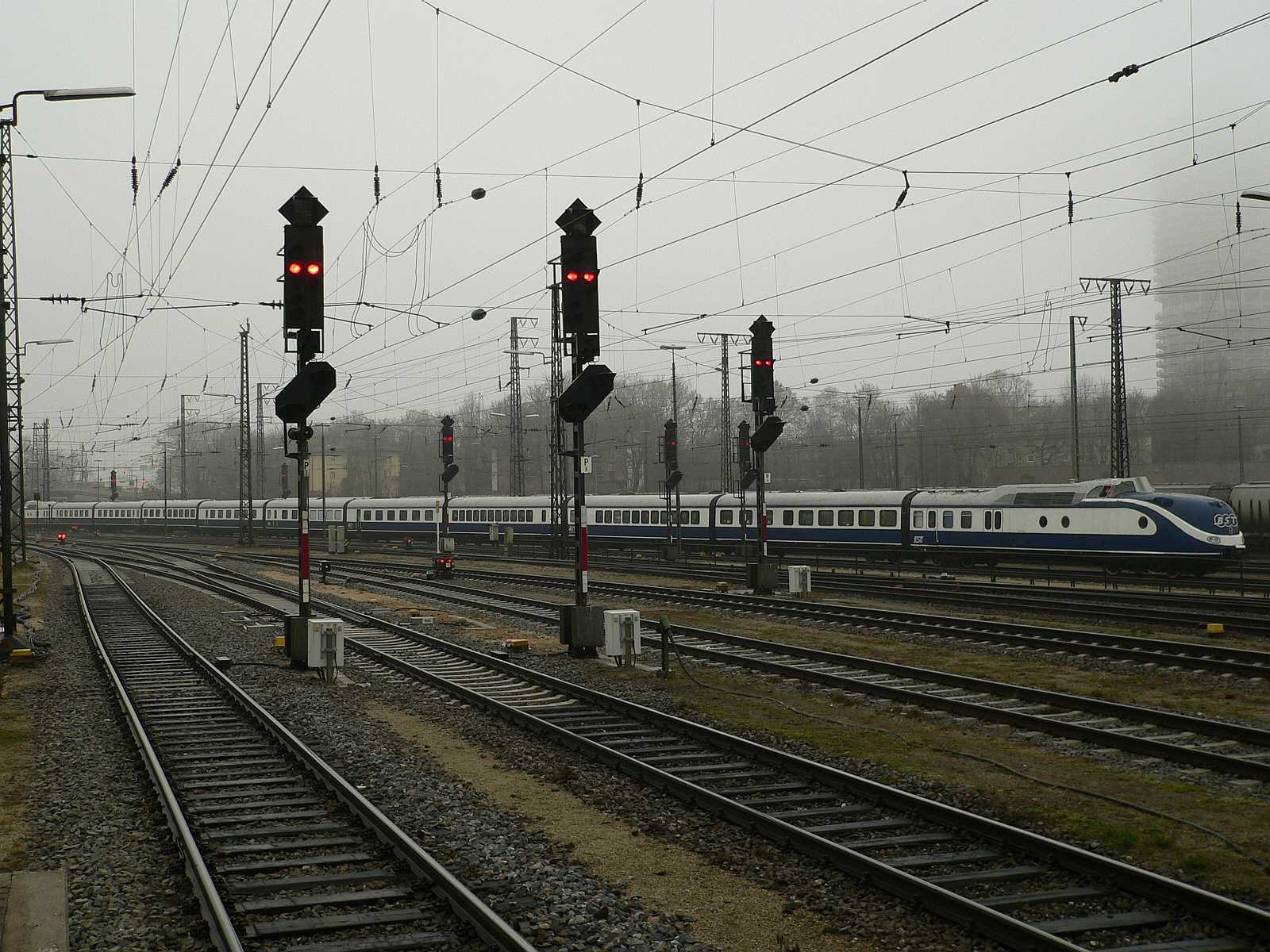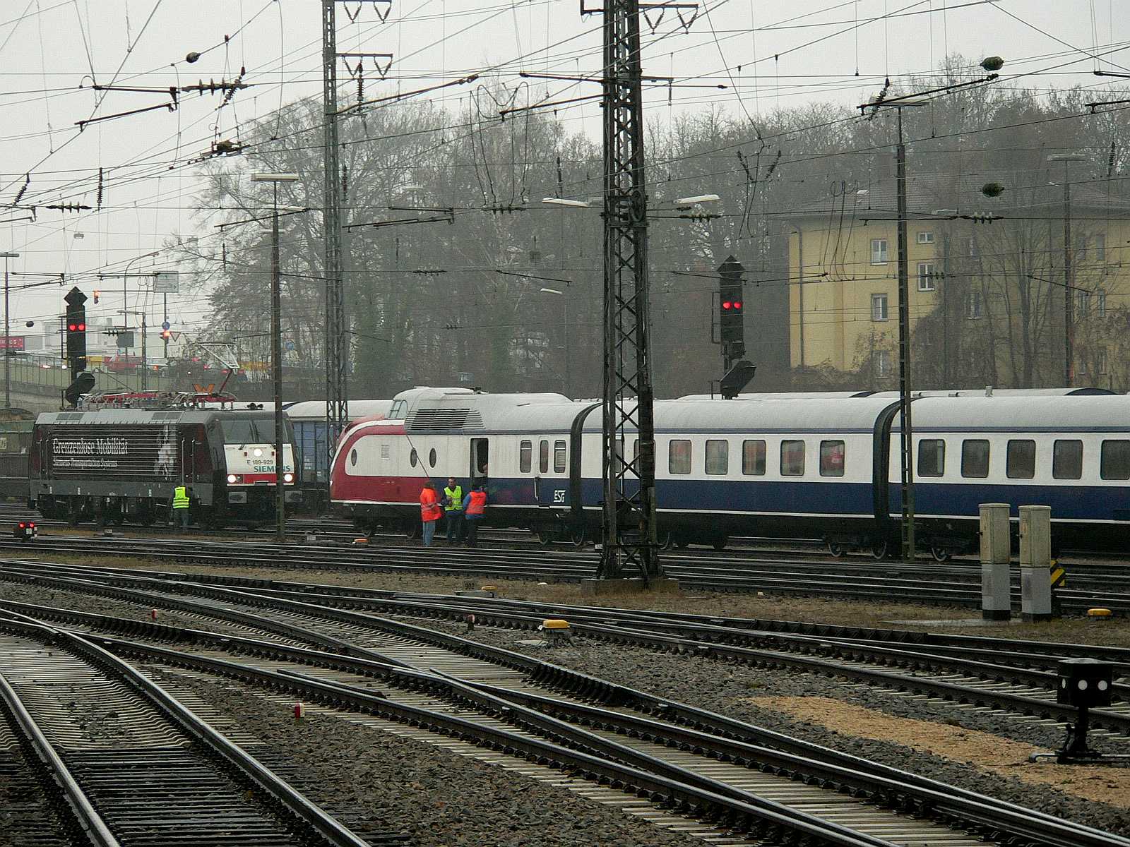 Bereitstellung des Zuges am Mittag für die Überführung nach München. Rechts der Augsburger Hotelturm im Nebel ! |