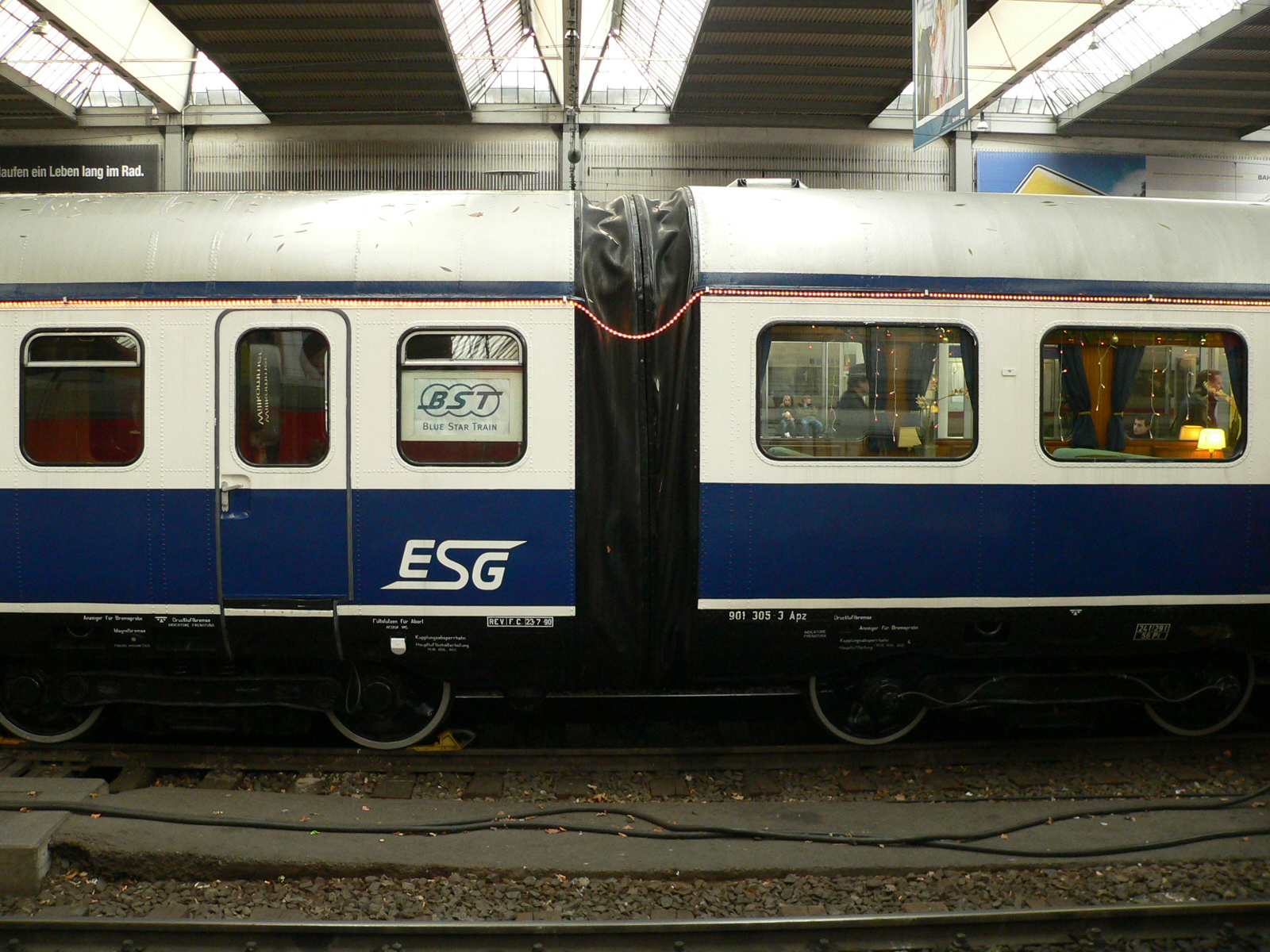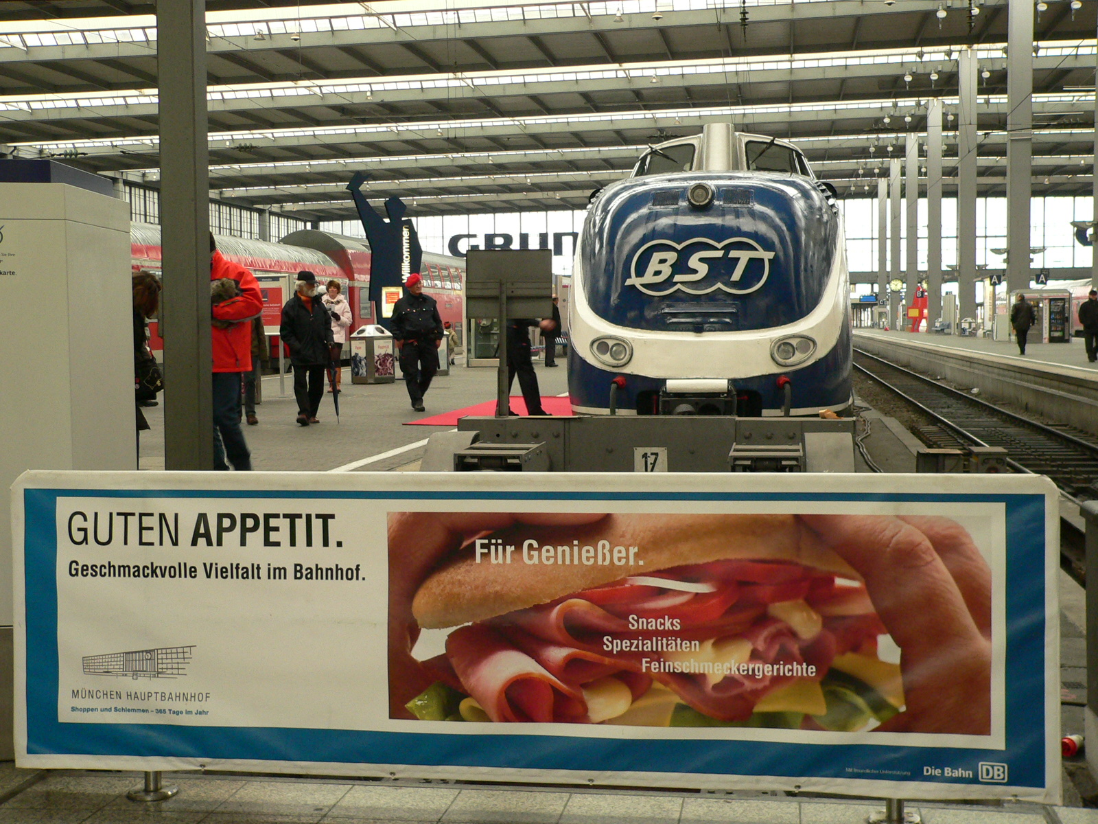 "Alles echt" ! Dieser nette Herr aus dem Fränkischen klopft mal kurz an. Später erzählt er u.a. über seine erste Modelleisenbahn und macht sich dann auf den Weg zu einer Geburtstagsfeier, weswegen er an diesem Sonntag nach München kam und hier auf den "blauen Zug" traf. |