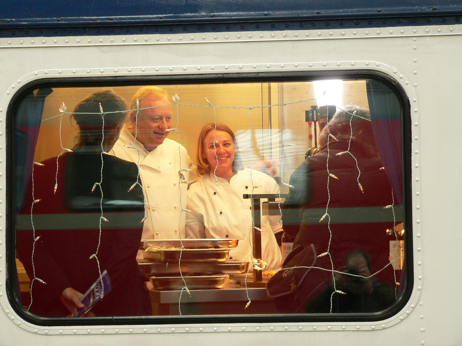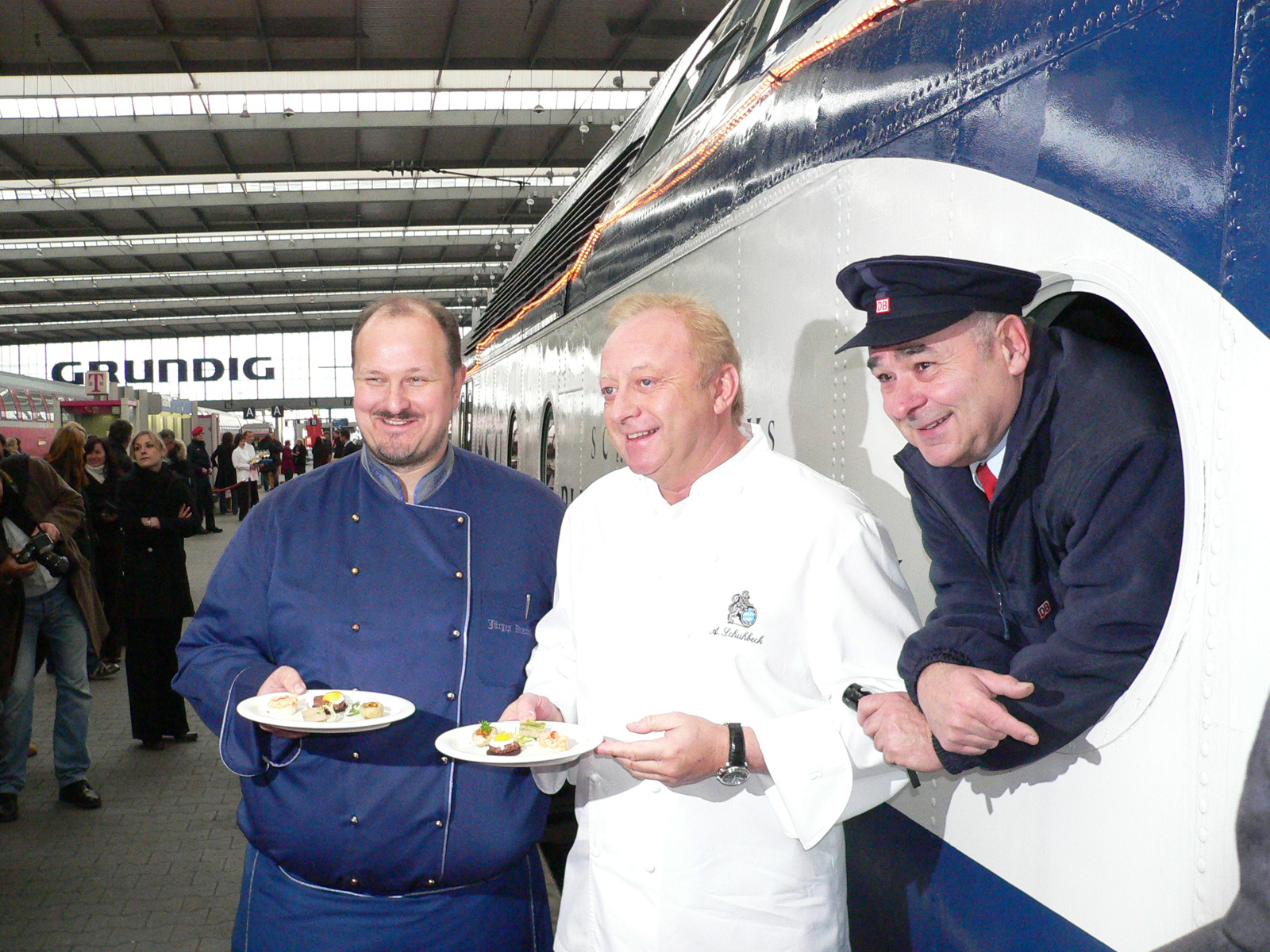 Alfons Schuhbeck in der Küche des ehemaligen TEE-Zuges. |
