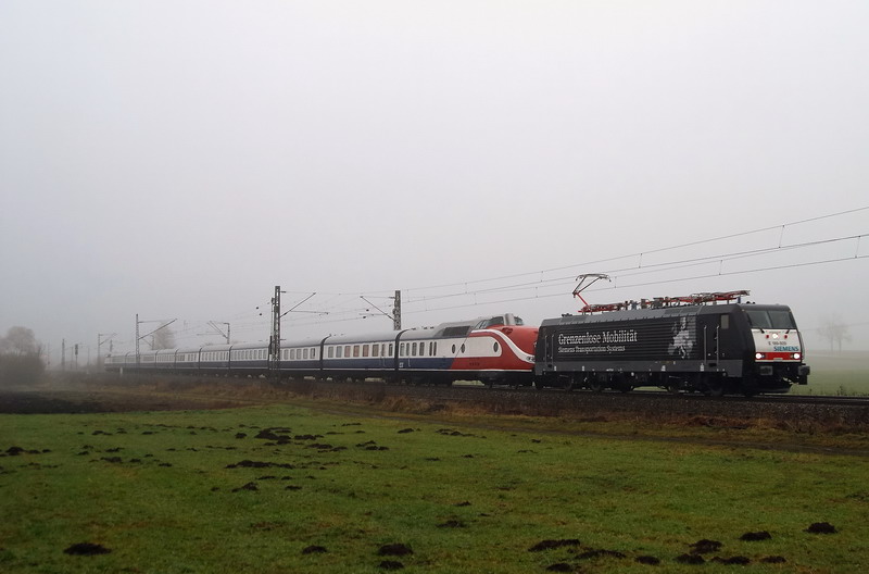 Lokwechsel: Die "schwarze Lady" 189 929 von SIEMENS übernimmt die 11-teilige ex-TEE-Garnitur. |