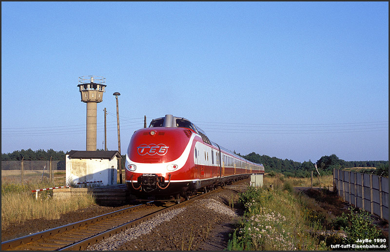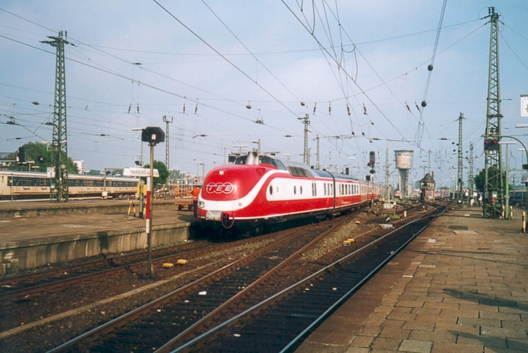 Nach langem Hin und Her über eine INTERCITY-Verbindung zwischen Berlin und Hamburg kam es im Sommer 1990 zur Anmietung einer 601-Garnitur durch die DEUTSCHE REICHSBAHN. Es handelte sich um den einzigen in Italien bei der Firma F.E.R.V.E.T. aufgearbeiteten Zug mit den Triebköpfen 601 006 und 015 sowie dem Reservetriebkopf 601 013, der Ende der 1980-er Jahre von der DB an die Firma JELKA verkauft wurde und wie fast alle 601/901-Fahrzeuge nach Italien gelangte. So wurde die aufgearbeitete Garnitur am 23. und 24.07.1990 von Castelfranco über den Brenner - Innsbruck - München - Nürnberg - Saalfeld - Halle nach Berlin überführt. Nach der Presse-Vorstellungsfahrt nach Hamburg am 27.07.1990 und einer Werkstattprobefahrt am 31.07.1990 nach Fürstenwalde übernahm der Zug vom 01.08.1990 bis 29.09.1990 das Zugpaar ICt 130/139 "Max Liebermann" zwischen Spree und Alster. Durch den Einsatz des komfortablen Zuges war der Grundstein für eine neue Qualität im Zugverkehr zwischen den beiden größten Städten Deutschlands gelegt worden. Einzig die Fahrzeiten konnten aufgrund des Streckenzustandes noch lange nicht an frühere Zeiten des "Fliegenden Hamburger" anknüpfen. Nach Ende des IC-Einsatzes fand am 23.11.1990 noch eine Messe-Sonderfahrt zur MEDICA von Berlin Zoo nach Düsseldorf statt bevor die gesamte Garnitur vom 09.-12.12.1990 wieder nach Italien zurücküberführt wurde um nach einem umfangreichen Umbau und Verkauf Ende 1992 als ITALY EXPRESS für exclusive "Schienenkreuzfahrten" eingesetzt zu werden. Lediglich der Reservetriebkopf 601 013 und der Abteilwagen 901 103 wurden nicht von ITALY EXPRESS übernommen und verblieben zunächst bei der Firma F.E.R.V.E.T. in Castelfranco.